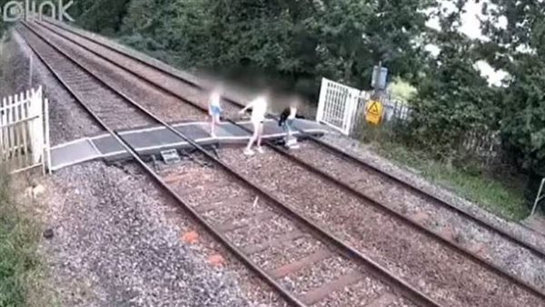 وأوضحت الصحيفة البريطانية أن مقطع فيديو” أظهر 3 أطفال يمشون عبر معبر للمشاة قبل التوقف في منتصف المسارواللهو واللعب، بعد اختراق سياج المزلقان بمنطقة عبور مشاة.