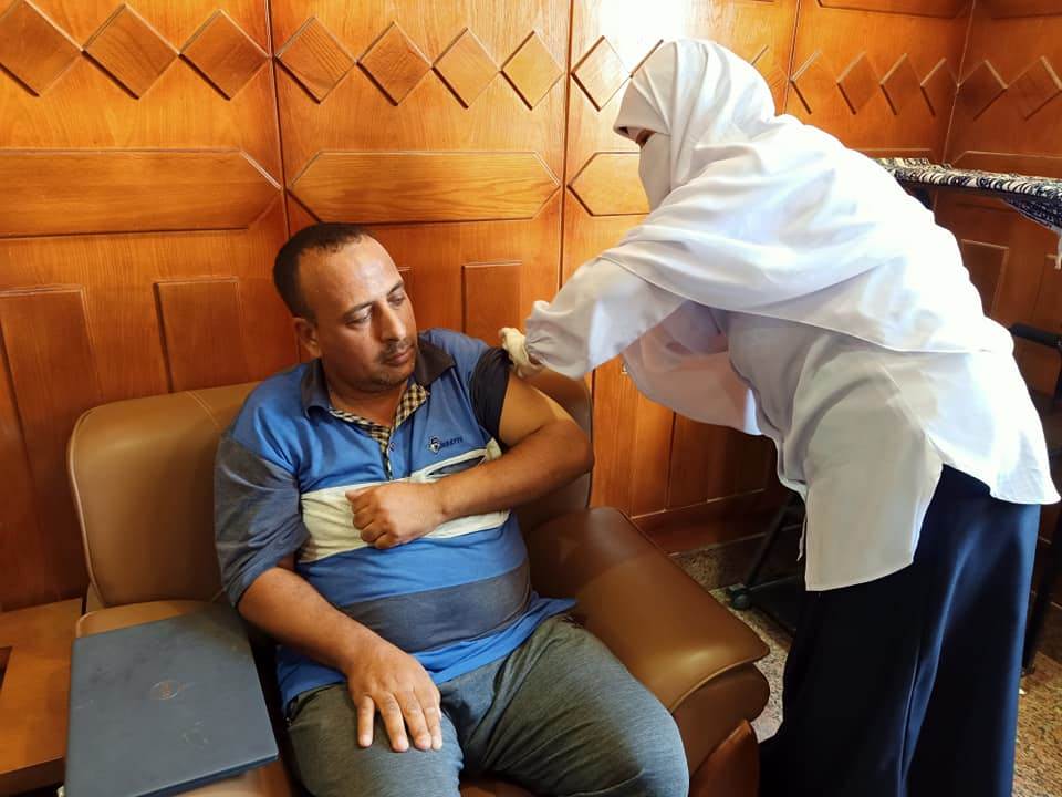 وأشار الى أن الفريق مجهز بجميع الأدوات الطبية المستخدمة بالاضافة الى إتباع الإجراءات الاحترازية الكاملة أثناء تلقى اللقاح حرصا على صحة وسلامة الجميع .. بالإضافة الى بعض الإرشادات الوقائية لمتلقى اللقاح عند حدوث اى أعراض جانبية ونوعية الأدوية التي يجب تناولها عند الشعور بأى عرض ، وأيضا شرح بعض الارشادات الصحية التي يجب إتباعها للوقاية من العدوى.