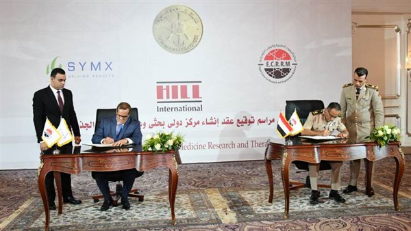 أعقب ذلك توقيع اللواء طيبب خالد عيسى عامر مدير مركز البحوث الطبية والطب التجديدى ممثلاً عن القوات المسلحة وأندرو راموس رئيس شركة سيمكس الأمريكية الشركة المنفذة للمشروع على عقد إنشاء المركز الدولى البحثى والذي سيتم إنشاؤه تحت إشراف الهيئة الهندسية للقوات المسلحة ممثلة فى إدارة المشروعات الكبرى وشركة هيل إنترناشيونال لتقديم خدمات الاستشارى وإدارة المشروع .