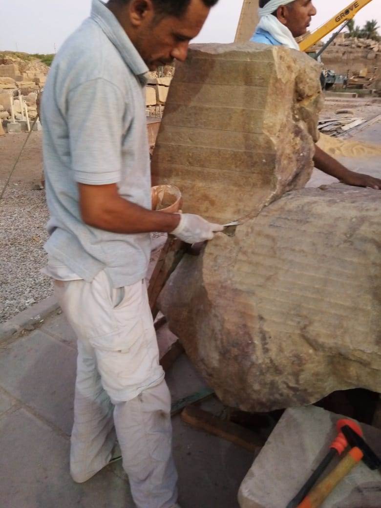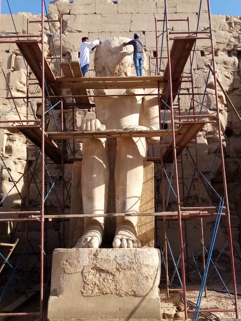 الانتهاء من ترميم تمثال الملك تحتمس الثاني بالواجهة الجنوبية للصرح الثامن بمعابد الكرنك