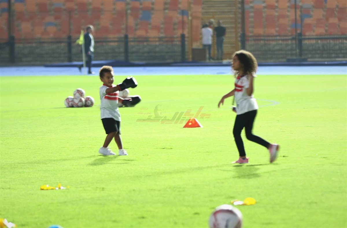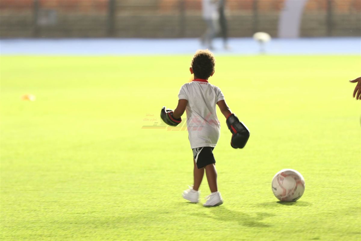 بقفازات في يديه الصغيرتان تواجد أدم ابن محمود عبد الرازق" شيكابالا" قائد فريق كرة القدم بنادي الزمالك في استاد القاهرة الدولي أمس ليحتفي بالتتويج بلقب الدوري رقم 14 مع والده عقب مباراته مع الاتحاد السكندري في الجولة الثانية والثلاثين لمسابقة الدوري المصري الممتاز.