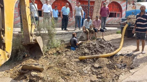 إصلاح هبوط أرضي وكسر في خط مياه بمدينة ميت غمر