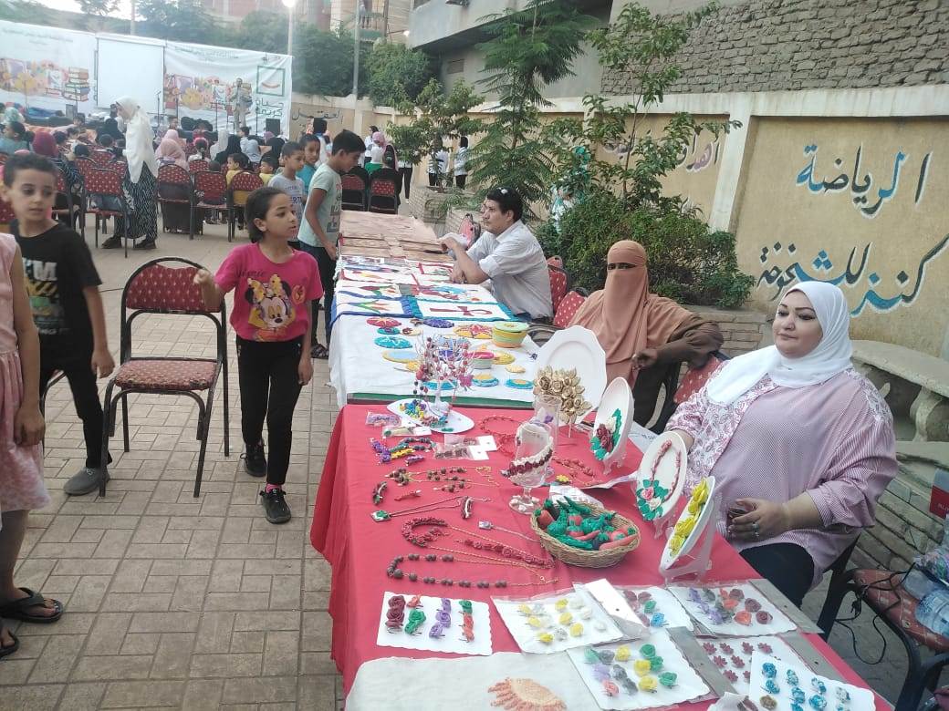 استهلت فعاليات الختام التي اقيمت بمدرسة الشهيد طيار عبد الخالق سلامة عمار الابتدائية بقرية منية شبين افتتاح د. حنان موسي معرض نتاج الورش الفنية، وورش الحرف اليدوية التي نفذت خلال أيام المبادرة وهي ورشة حلي، ديكوباج، عجينة السيراميك، تطريز وبري، حرق علي الجلد، خيامية، قشرة خشب، خوص النخيل، بجانب ورشة اكتشاف المواهب في كافة المجالات الفنية .