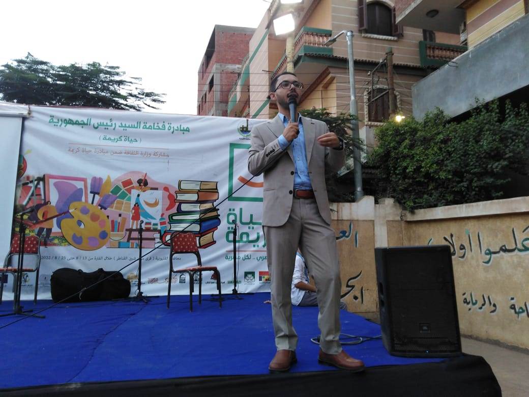 اختتمت الهيئة العامة لقصور الثقافة برئاسة المخرج هشام عطوة فعالياتها الثقافية والفنية بمبادرة "حياة كريمة"، بحضور د. حنان موسي رئيس الإدارة المركزية للدراسات والبحوث، والتي نفذت بإشراف أحمد يسري مدير عام ثقافة الشباب والعمال، بالتعاون مع وزارتي الشباب والرياضة، التربية والتعليم، بجانب المجلس القومي للمرأة، الشركة القابضة لمياه الشرب، جمعيات المجتمع المدني، صندوق مكافحة وعلاج الإدمان والتعاطي، وذلك بقري حياة كريمة بمحافظة القليوبية باقليم القاهرة الكبري وشمال الصعيد برئاسة الفنان جلال عثمان، بفرع ثقافة القليوبية برئاسة ياسر فريد.