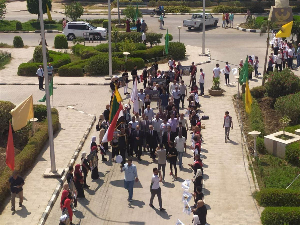 حيث عبر الحاضرون والطلاب عن خالص شكرهم وتقديرهم لما بذله رئيس الجامعة من جهد مخلص من خلال حمل اللافتات والأعلام التي تعبر عن الشكر والإنجازات التي قدمها للجامعة، متمنين له التوفيق والسداد في المرحلة القادمة في خدمة الوطن، والجامعة، وطلابه، والباحثين.