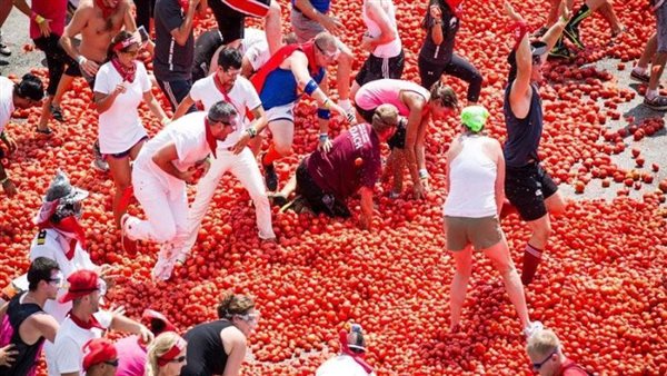 بعد توقفه لمدة عامين.. "لاتومتينا" يعود من جديد بأكبر بركة حمراء من الطماطم