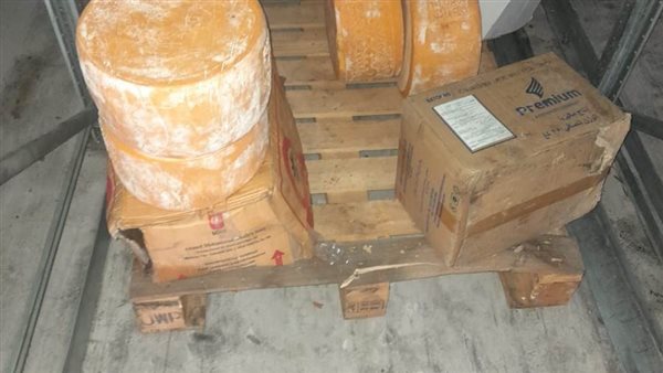 عدد ٢٠ برميلًا بداخلها أنواع مختلفة من الجبن منتهية الصلاحية بإجمالي كمية قدرها ٤٠٠٠ كجم.