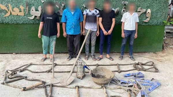 وعقب تقنين الإجراءات تم استهدافهم وتم ضبط 5 أشخاص أثناء قيامهم بالتنقيب عن الآثار داخل غرفة بالطابق الأرضي بالعقار ملك والد أحدهم، وعُثر بداخلها على حفرة قطرها 1 متر بعمق 4 أمتار وأدوات التنقيب، وبمواجهتهم اعترفوا بقيامهم بأعمال الحفر بقصد التنقيب عن الآثار.