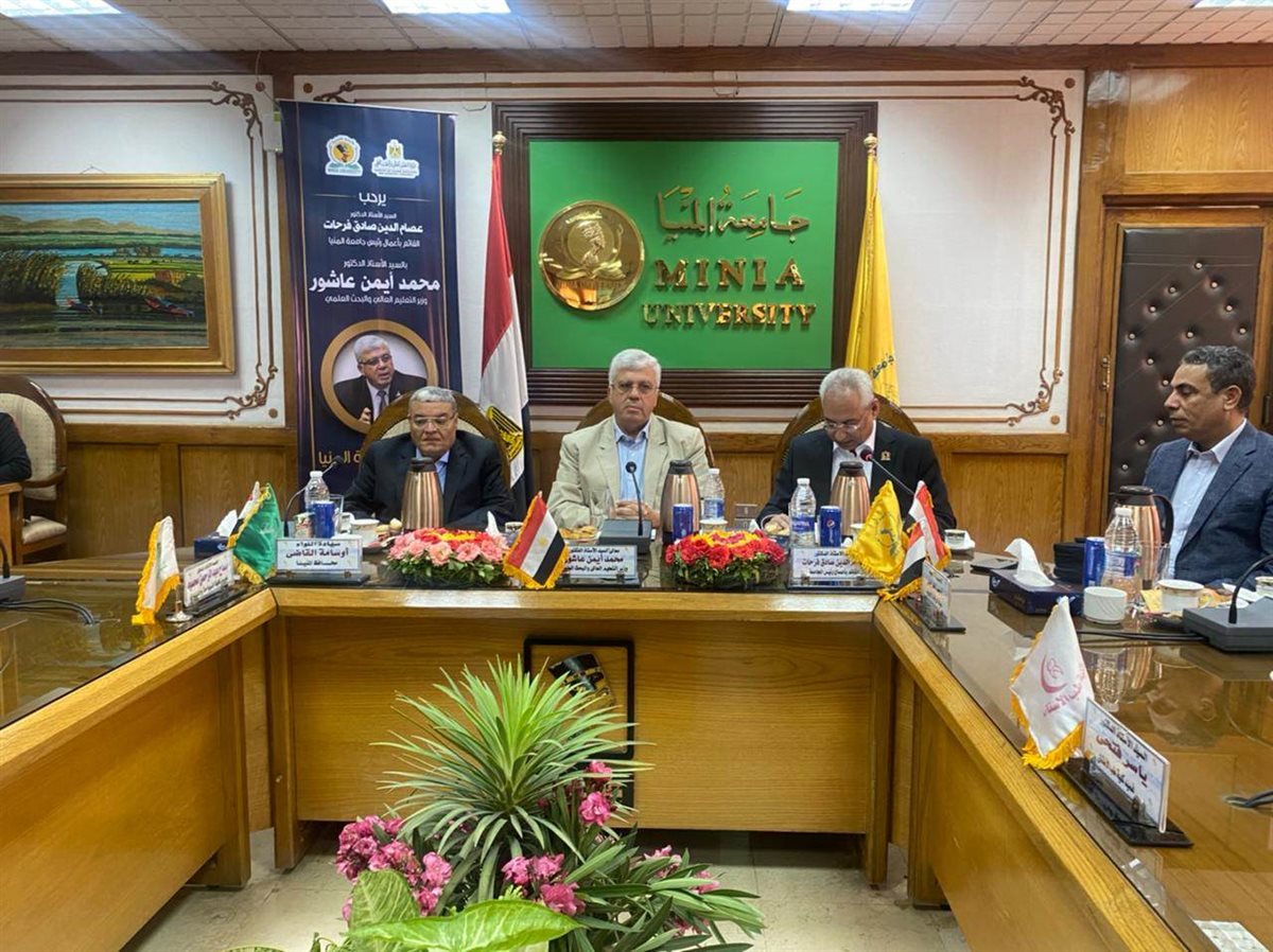 وزير التعليم العالي يشهد اجتماع مجلس جامعة المنيا (صور)