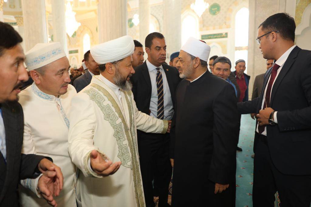 وكان في استقبال شيخ الأزهر لدى وصوله إلى مسجد "حضرة السلطان"، المفتي العام لجمهورية كازاخستان، وعدد من القيادات الدينية والعلمية وخريجي ومبعوثي الأزهر في كازاخستان.