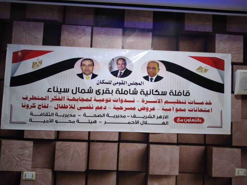 وأشارت سالم الى أن القافلة السكانية بمشاركة الأزهر الشريف، مديريتى: الصحة والثقافة، الهلال الأحمر المصري بشمال سيناء، وهيئة محو الأمية وتعليم الكبار .