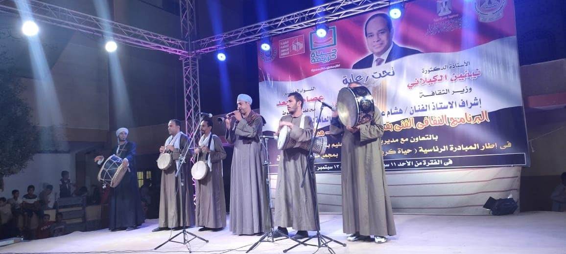 أشاد اللواء عصام سعد محافظ أسيوط، بفعاليات البرنامج الثقافي الفني بقرية بني زيد بوق بمركز القوصية الذي ينفذه إقليم وسط الصعيد الثقافي بالتعاون مع مديرية التربية والتعليم ضمن فعاليات المبادرة الرئاسية حياة كريمة في الفترة من 11 : 14 سبتمبر الجاري تحت رعاية الدكتورة نيفين كيلاني وزير الثقافة ومحافظ أسيوط وإشراف الفنان هشام عطوة رئيس الهيئة العامة لقصور الثقافة ، موجها الشكر لكل القائمين والمشاركين فى الفعاليات لتميزهم وخروج الفعاليات بالمظهر الحضارى الذي يليق بالوجه الثقافى والحضارى للمحافظة، معلناً دعمه الكامل للفعاليات وحضورها اليوم، لتقديم منتج ثقافي فني لأهالي قرى حياة كريمة والارتقاء بالخدمات الثقافية بتلك القرى تنفيذًا لتوجيهات الرئيس عبدالفتاح السيسي رئيس الجمهورية ببناء الوعي والإدراك لدى الإنسان المصري وإكسابه القدرة على تحقيق متطلبات الوطن التنموية وفقًا لرؤية مصر 2030 واستراتيجية التنمية الشاملة .