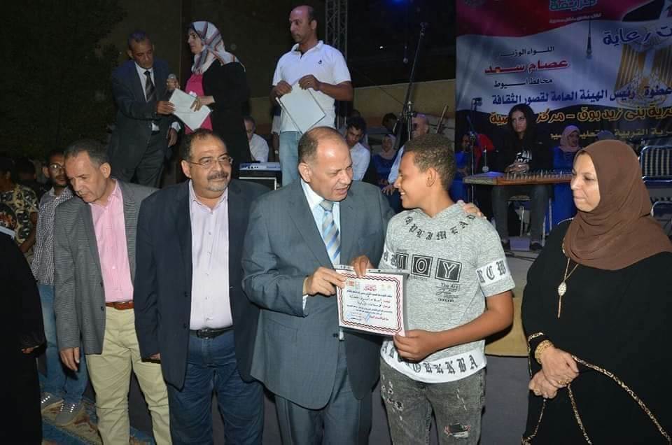 كما قام اللواء عصام سعد محافظ أسيوط بتكريم المواهب الشابه من أبناء القرية فى جميع المجالات والمتميزين فى الورش الفنية المقدمة