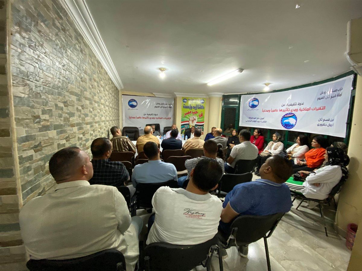 وفي محافظة الفيوم، نظمت أمانة بندر ثان الفيوم، ندوة بعنوان "التغيرات المناخية ومدر تأثيرها عالمياً ومحلياً"، والتي أقيمت تحت رعاية النائب عبد القادر الجارحي أمين المحافظة، والنائب يوسف الشاذلي أمين التنظيم، وبحضور الدكتور عمرو هيبة، عضو الأمانة للاتحاد العربي للتنمية المستدامة والبيئة بجامعة الدول العربية، وذلك بمقر أمانة بندر ثان برئاسة جمال دكروري، وفي حضور أمناء الأمانات النوعية والأمناء المساعدين بالمحافظة والمركز.