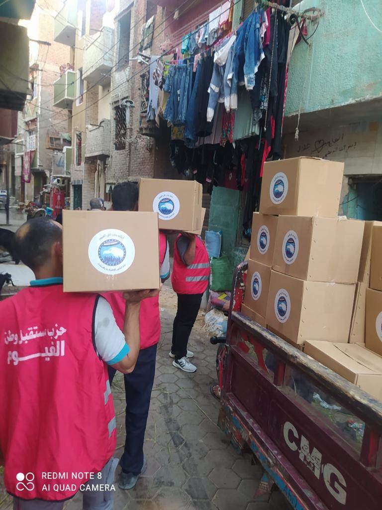 وفي محافظة الفيوم، قامت أمانة الحزب ببندر ثاني الفيوم، برئاسة جمال دكروري أمين بندر ثاني، وبرعاية عماد شعبان أمين الاقتصاد والاستثمار، بتوزيع 100شنطه للسلع الغذائية الجافة ضمن خطه توزيع 600 شنطه توزع علي المستحقين من أهالينا بندر تاني الفيوم، وذلك من خلال المرور علي المنازل وفقا لكشوف المستحقين التي تم إعدادها مسبقا لضمان الوصول إلي الأسر الاكثر احتياجا.