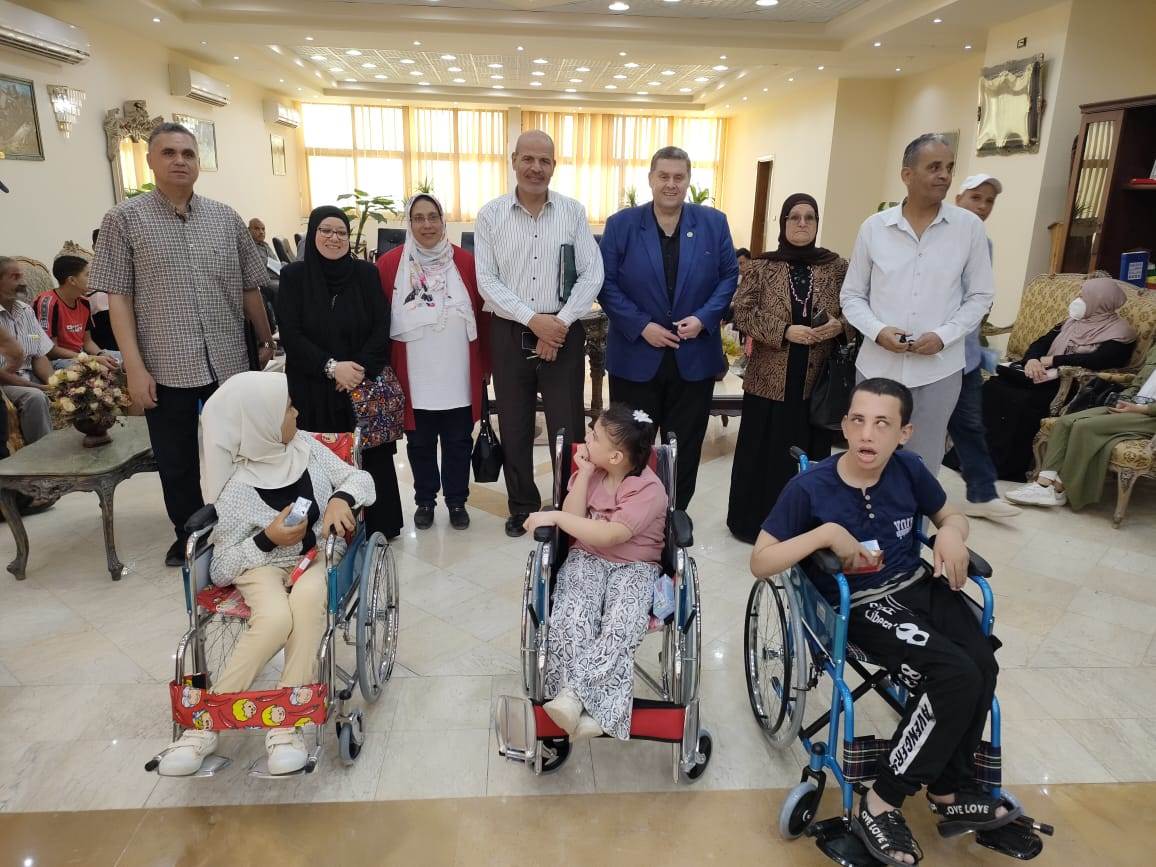 بمناسبة اليوم العالمى للغة الإشارة.. قام الدكتور محمد عبد الفضسل شوشة محافظ شمال سيناء.. يرافقه حمزة رضوان وكيل وزارة التربية والتعليم والدكتورة عزة كمال مدير إدارة التربية الخاصة وعلي غيط مدير عام مديرية التضامن الاجتماعى وأعضاء المجلس الاستشارى للتربية الخاصة.. بتوزيع عدد 25 كرسيا متحركا مقدمة من اليونيسيف على ذوي الاحتياجات الخاصة من المعاقين.