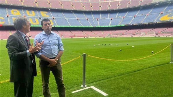 وزير الرياضة يتفقد ملعب "الكامب نو" بمدينة برشلونة فور وصوله إلى إسبانيا