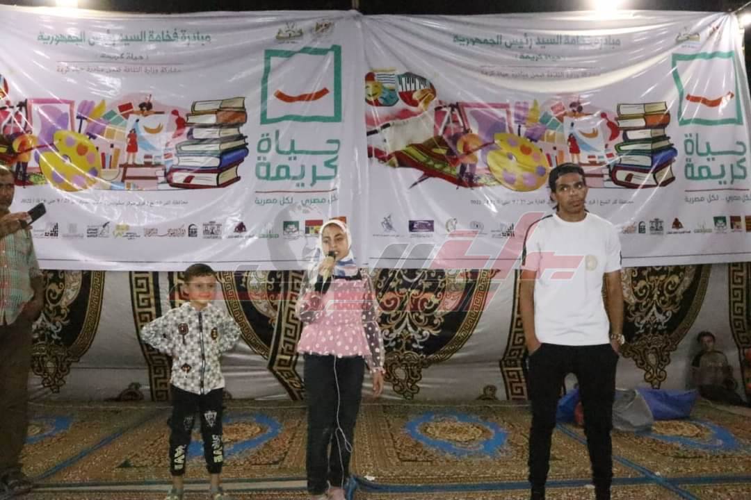 تستكمل وزارة الثقافة برئاسة الدكتورة نيفين الكيلاني مشاركتها الثقافية والفنية بمبادرة "حياة كريمة" الثقافية والفنية، من خلال الهيئة العامة لقصور الثقافة برئاسة المخرج هشام عطوة، والتي تنفذها الإدارة المركزية للدراسات والبحوث برئاسة د. حنان موسى، وباشراف حمدي سعيد مدير عام ثقافة القرية، وأحمد يسري مدير عام الإدارة العامة للشباب والعمال، وذلك بقري مركز مطوبس بفرع ثقافة كفر الشيخ برئاسة الدكتورة جاكلين بشرى التابع لإقليم شرق الدلتا الثقافي برئاسة أمل عبدالله، وبالتعاون مع وزارة التربية والتعليم"، والمجلس القومي للمرأة، صندوق مكافحة وعلاج الإدمان، الشركة القابضة للمياه، وذلك خلال الفترة من 25 سبتمبر حتى6 أكتوبر 2022م.