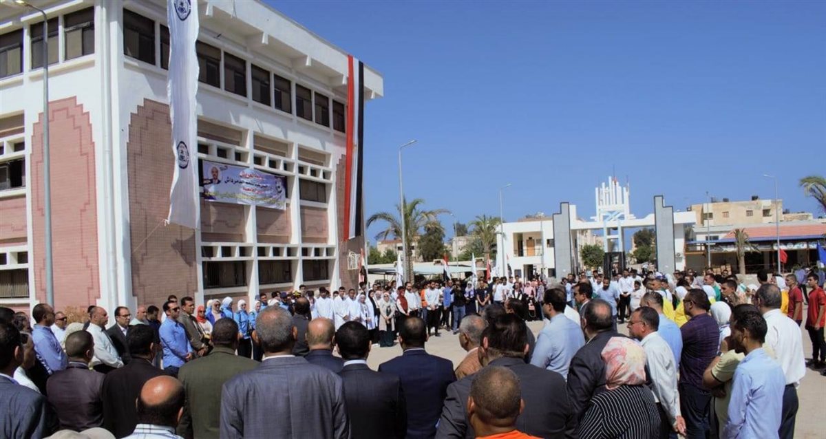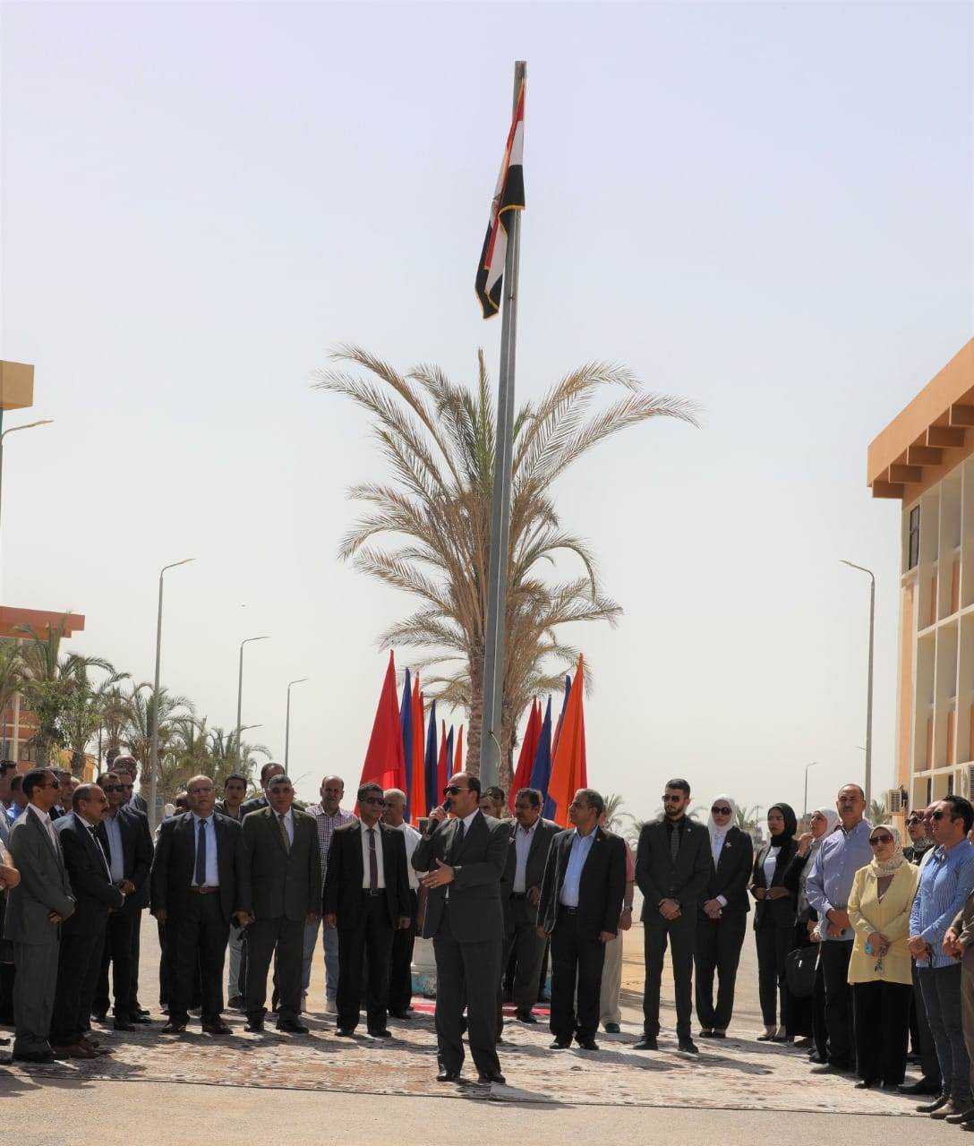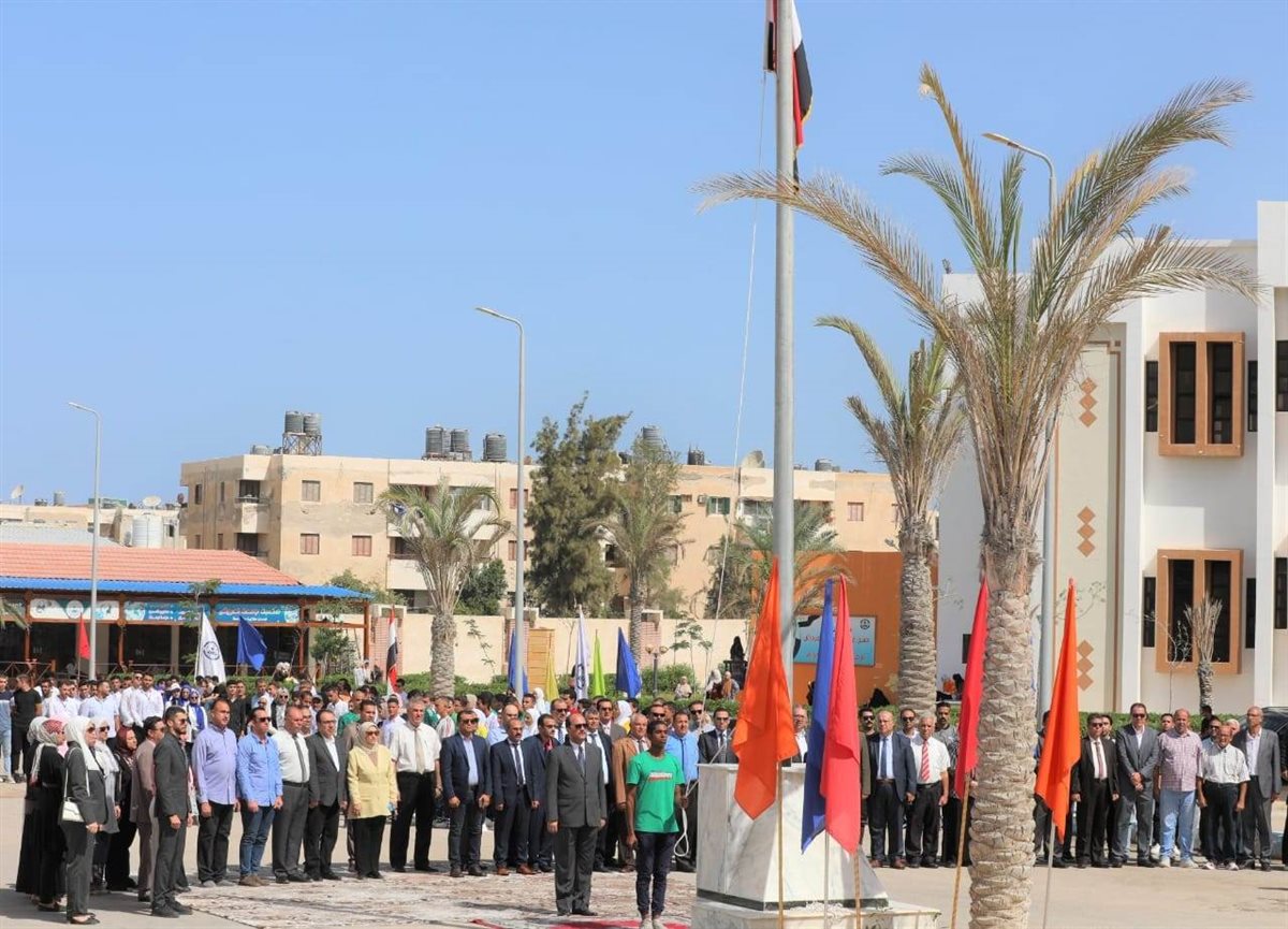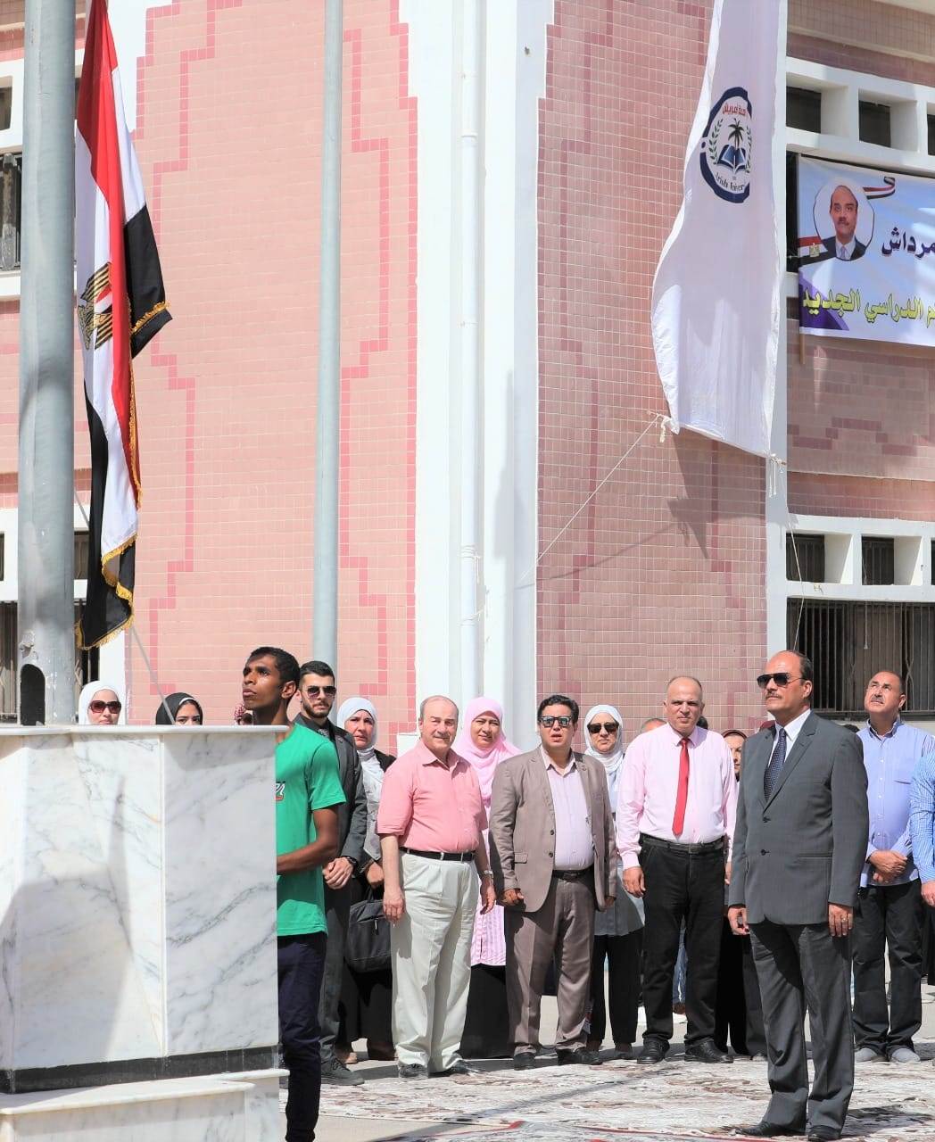 جامعة العريش تستقبل الطلاب بتحية العلم والأغاني