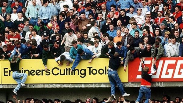 وقعت يوم الخامس عشر من إبريل في عام 1989 وشهدت وفاة 96 مشجعا من أنصار ليفربول الإنجليزي، وإصابة أكثر من 700 شخصا، وكانت المباراة تجمع بين ريدز ونوتنجهام فورست لحساب نصف نهائي كأس إنجلترا.