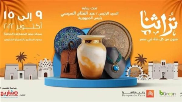 جدير بالذكر أن الدورة الرابعة لمعرض تراثنا ستبدأ من 9 أكتوبر، وتستمر حتى 15 أكتوبر بمركز مصر للمعارض الدولية يوميا من 11 صباحا إلى 10 مساء ما عدا الأحد 9 أكتوبر يفتح المعرض أبوابه للجمهور من الساعة 4 عصرا.