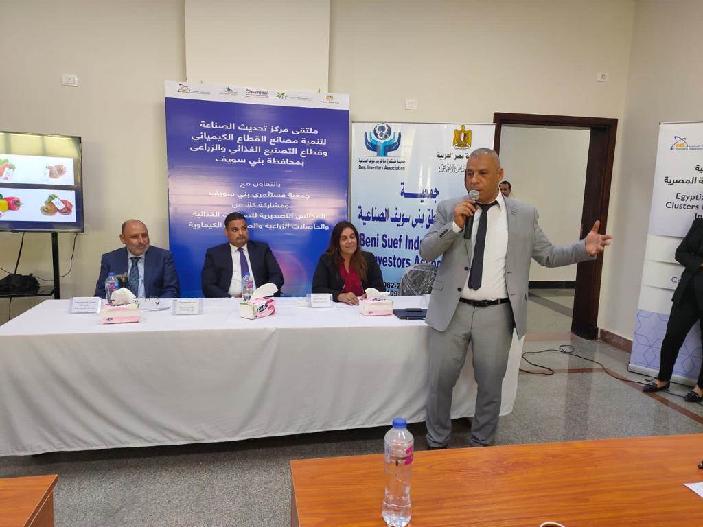 عقد مكتب تحديث الصناعة بني سويف، أمس الاثنين، فعاليات الملتقى الخاص بتنمية مصانع القطاع الكيماوي وقطاع التصنيع الغذائي والزراعي، بالتعاون مع جمعية مستثمري مناطق بني سويف الصناعية، وذلك في إطار التعاون بين الجمعية ومركز تحديث الصناعة وبمشاركة كل من المجالس التصديرية للصناعات الغذائية والحاصلات الزراعية والصناعات الكيماوية.