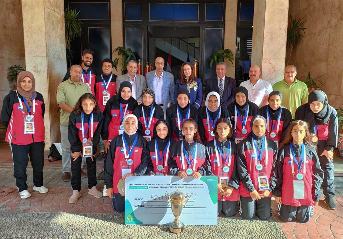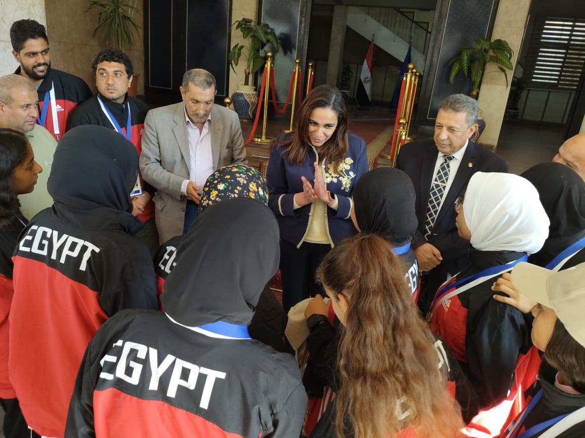 وقدمت نائب المحافظ التهنئة للفريق الفائز وكل من ساهم في تحقيق هذا الإنجاز، كما قامت بتكريم عضوات الفريق تكريمًا وتشجيعًا لهن على الاستمرار في مواصله تفوقهن الرياضي ورفع راية مصر عالية في المحافل الدولية والعالمية، وحثتهن أن يكن مثالًا يحتذى به لأقرانهن، وأن يحافظن على التفوق العلمي والدراسي بجانب تفوقهن الرياضي.
