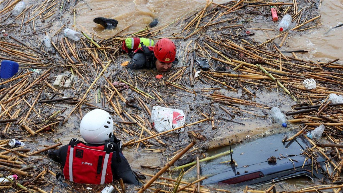 وشوهدت فرق الإطفاء حتى رقبتها تقريبًا في الماء أثناء عملية البحث، حيث شوهدت مركبات مغمورة بجانب حطام عائم بما في ذلك ثلاجة.