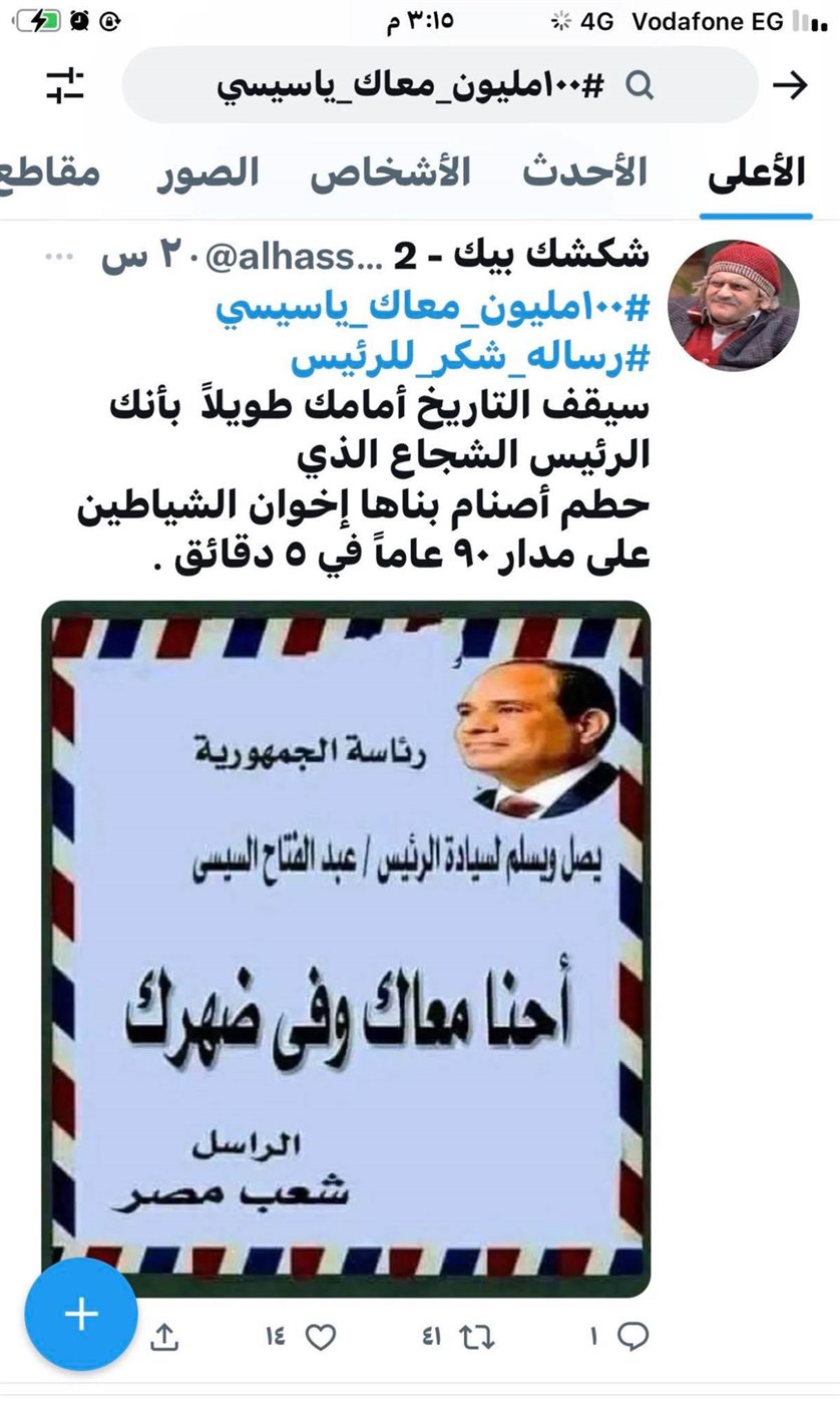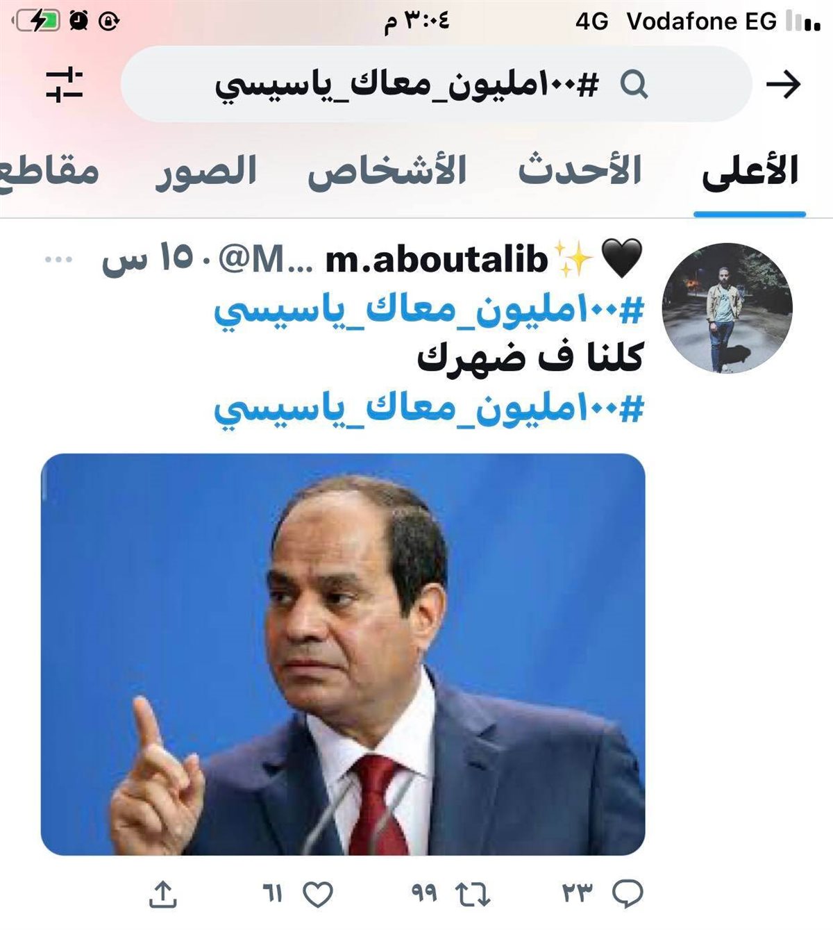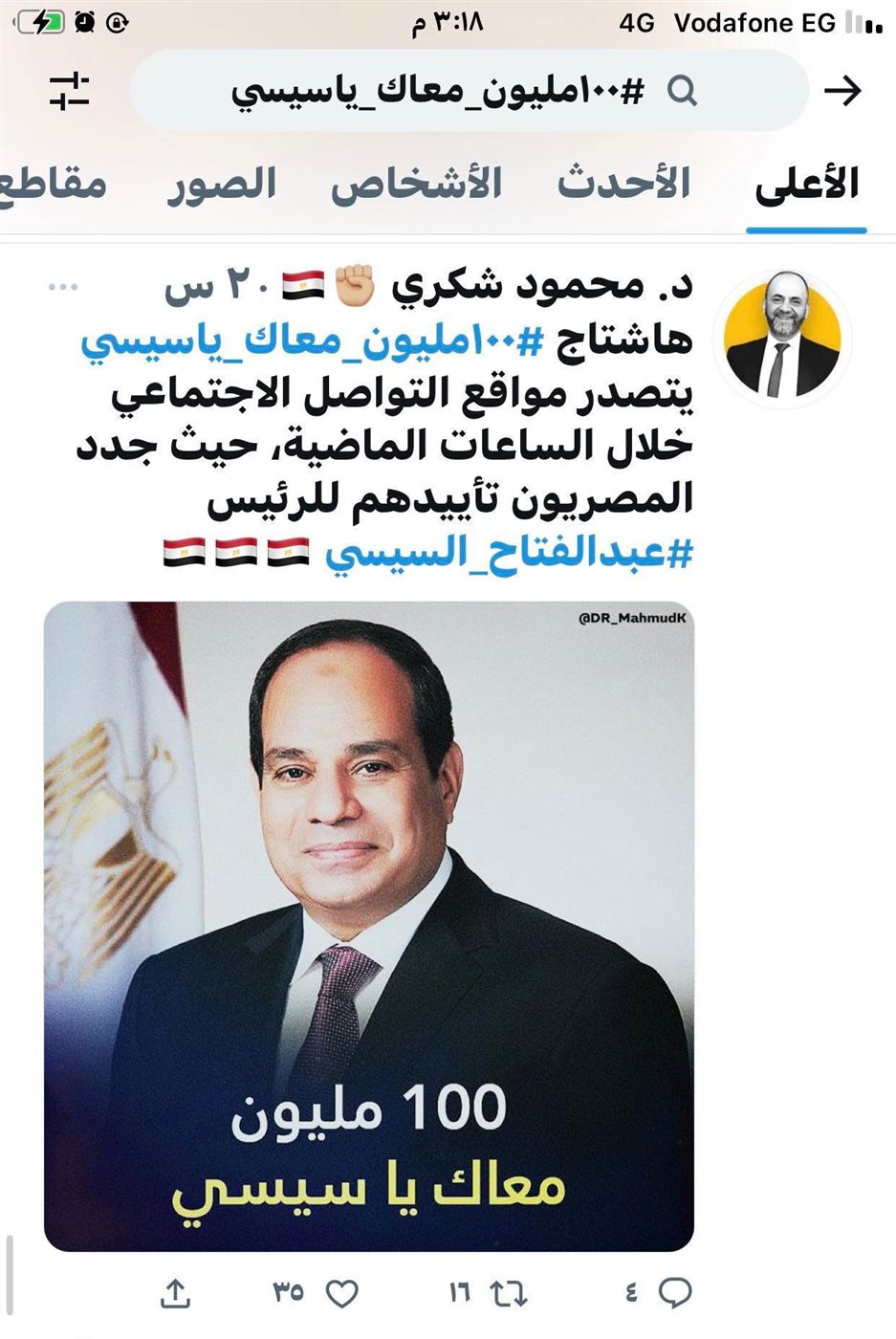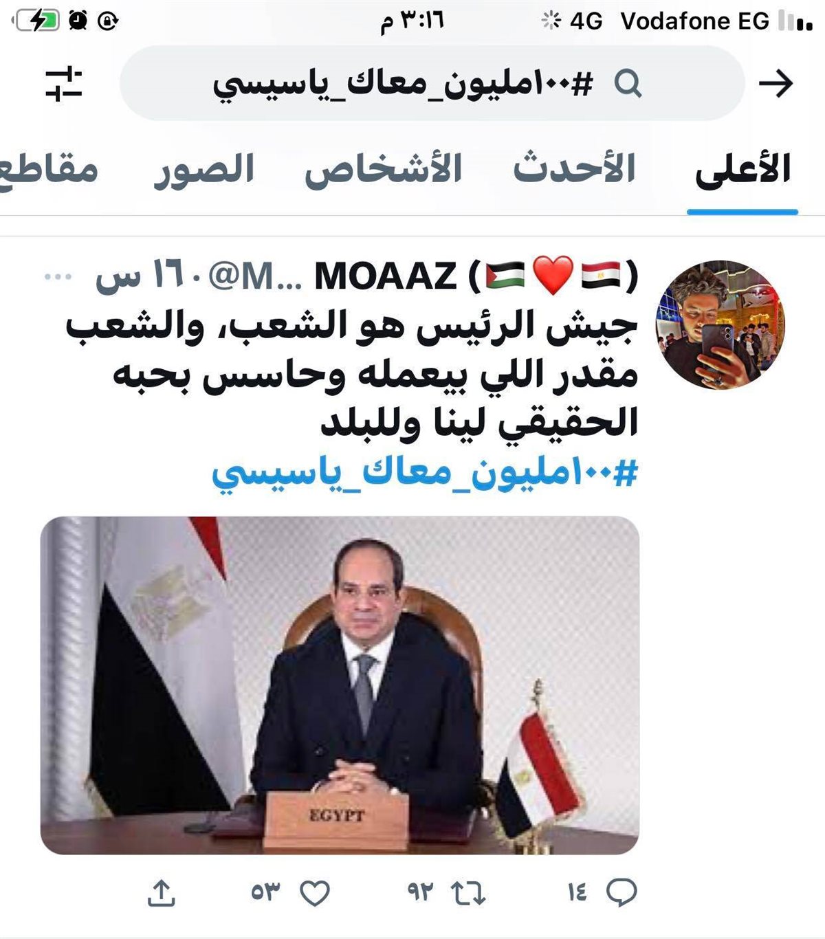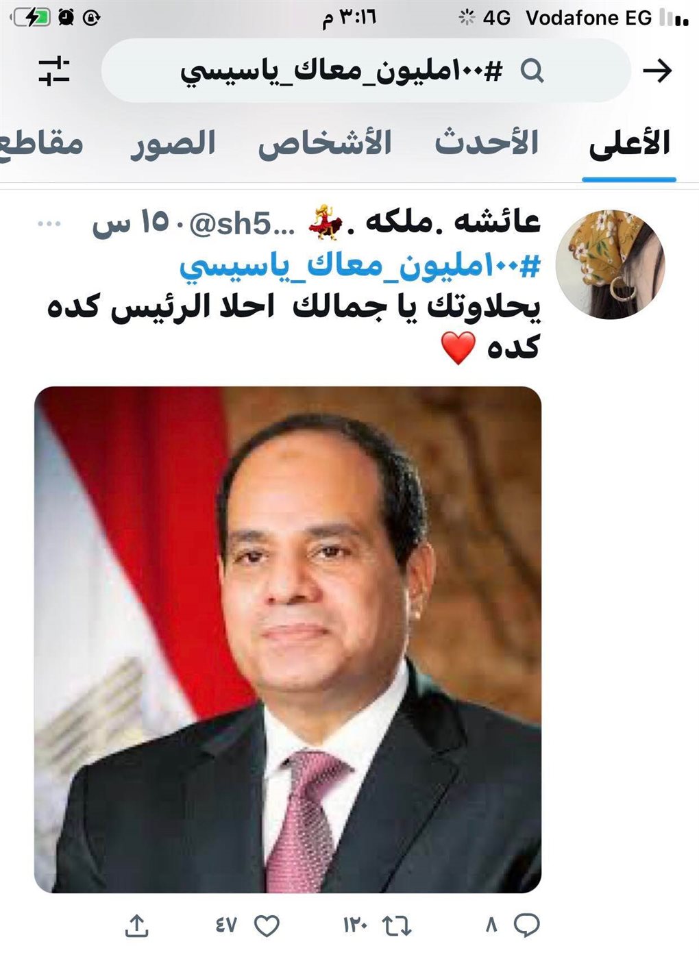 "100مليون_معاك_يا سيسي" هاشتاج يتصدر تويتر