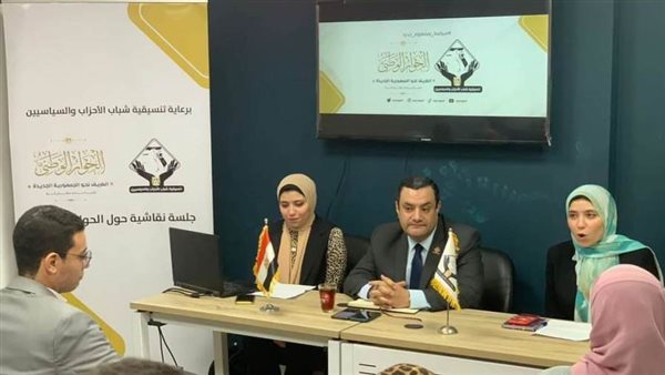 نظمت تنسيقية شباب الأحزاب والسياسيين جلسة نقاشية بمنطقة الدقي مع مجموعة من طلاب جامعة القاهرة، حول الحوار الوطني وأهم القضايا المطروحة على مائدته.