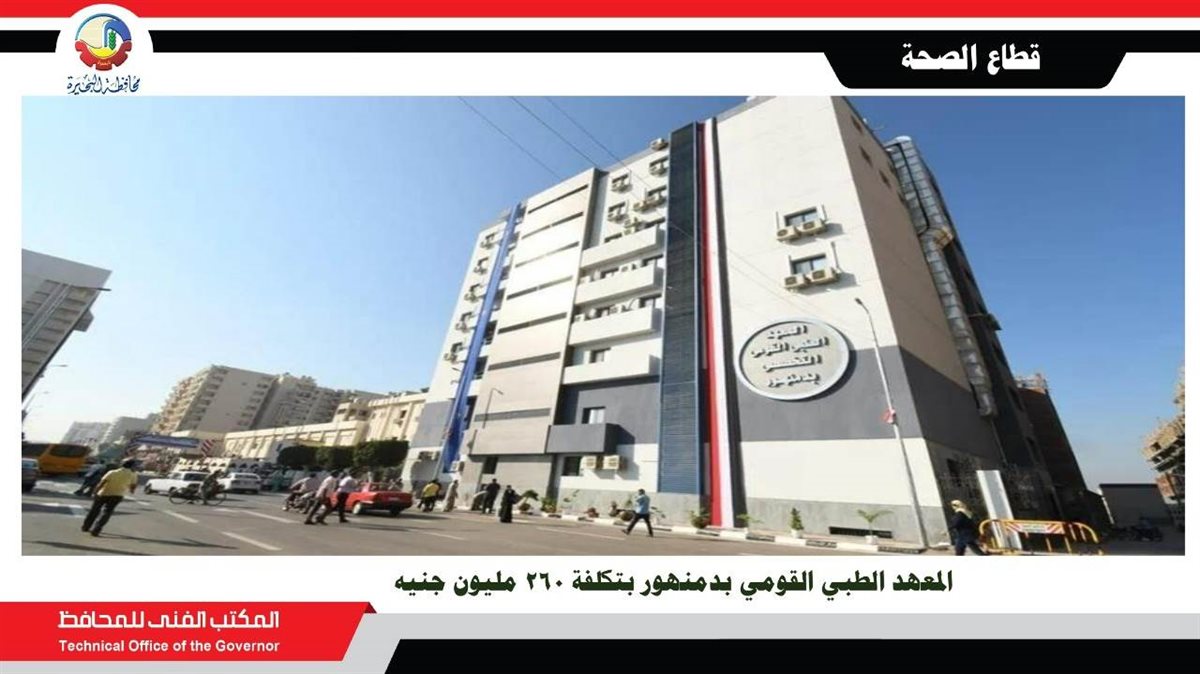 ومن أهم المشروعات التي تم تنفيذها المعهد الطبي القومي بدمنهور بتكلفة 260 مليون جنيه والذي قام الرئيس عبد الفتاح السيسي بافتتاحه عبر الفيديو كونفرانس وهو من أكبر الصروح الطبية الجديدة بالمحافظة بالاضافة الى إنشاء مستشفى كوم حمادة المركزى بتكلفة 800 مليون جنيه ومستشفى العسكري بدمنهور بتكلفة 326 مليون جنيه.
