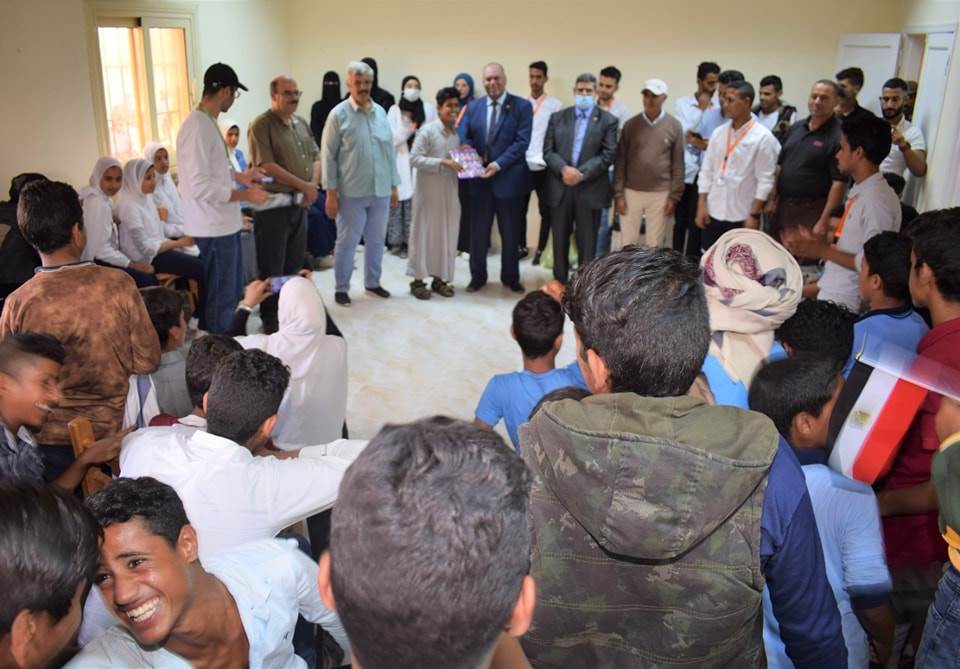 وقام أيضاً أساتذة كلية التربية بالتوجه إلى مدارس قرية الروضة وقاموا أيضاً بعمل زيارة لحضانة الروضة وعمل مسابقات للأطفال وتوزيع الهدايا بغرض إدخال البهجة ورسم الابتسامة على وجوه الأطفال.