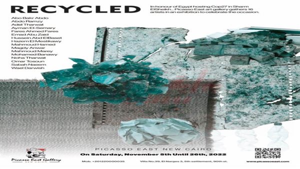 تماشيا مع انعقاد قمة الأمم المتحدة للمناخ Cop27، بمدينة شرم الشيخ بداية من 6 نوفمبر حتى يوم 18 من الشهر نفسه، ينظم جاليري بيكاسو ايست التجمع الخامس، معرضا بعنوان " إعادة تدوير .. Recycled” لـ16 فنانا وفنانة، وذلك يوم السبت ٥ نوفمبر الجاري في تمام الساعة السادسة مساء.