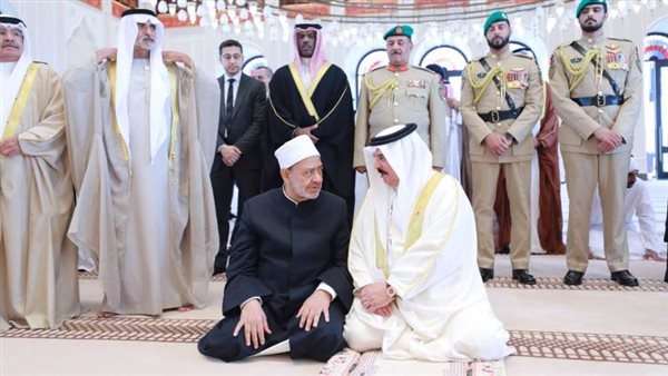 شيخ الأزهر يؤدي صلاة الجمعة مع ملك البحرين بجامع قصر الصخير