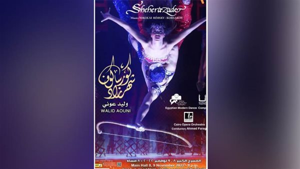 تقدم فرقة الرقص المسرحي الحديث بقيادة المخرج وليد عوني، رائعة نيقولاي ريمسكي كورساكوف "شهر زاد" ،وذلك في الثامنة مساء يومي الثلاثاء والأربعاء 8 و9 نوفمبر الجاري على المسرح الكبير بدار الأوبرا المصرية، وبمسرح سيد درويش بالإسكندرية، في الثامنة مساء يومي 16 و17، بمصاحبة أوركسترا أوبرا القاهرة بقيادة المايسترو أحمد فرج.