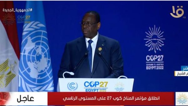 شهدت فاعليات الشق الرئاسي من الدورة السابعة والعشرين لمؤتمر الأطراف لاتفاقية الأمم المتحدة الإطارية بشأن المناخ "كوب 27" بشرم الشيخ، كلمة للرئيس السنغالي ماكي سال.