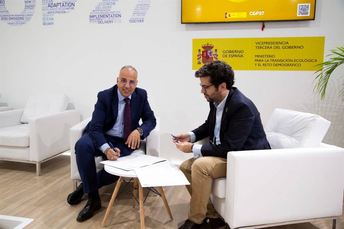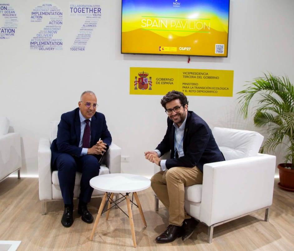 على هامش فعاليات مؤتمر المناخ COP27 .. قام الدكتور هانى سويلم وزير الموارد المائية والري وآنطون ليس مدير الوكالة الإسبانية للتعاون الإنمائي الدولي (AECID)، بتوقيع "خطاب نوايا" للشراكة بين الوزارة والوكالة كخطوة أولى لإطلاق مشروع بقيمة ٦٧٠ ألف يورو كمنحة مقدمة من الجانب الأسبانى لتحديث منظومة الري في مصر.