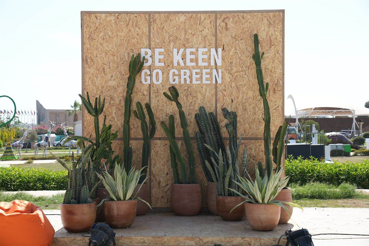 واستمرارًا للرؤية المصرية الشاملة للحفاظ على البيئة، وفرت المنطقة الخضراء صناديق للقمامة مُقسمة للنفايات المختلفة؛ من أجل التيسير على الزوار وعمال النظافة والحفاظ على البيئة والمُناخ، وتحذيرًا من مخاطر النفايات الكهربائية انشأ مجموعة من الشباب شجرة تحذيرية مكونة من النفايات الكهربائية غير القابلة للتدوير؛ للتحذير والتذكرة للزوار بخطورة تلك النفايات، وكذلك الاهتمام بالفن التشكيلي من خلال الأشكال المكونة من النفايات والبلاستيك وكوتشات السيارات والعجل، واستغلالها وإعادة تدويرها للحفاظ على البيئة والمناخ بدلًا من إلقائها وضررها للبيئة.
