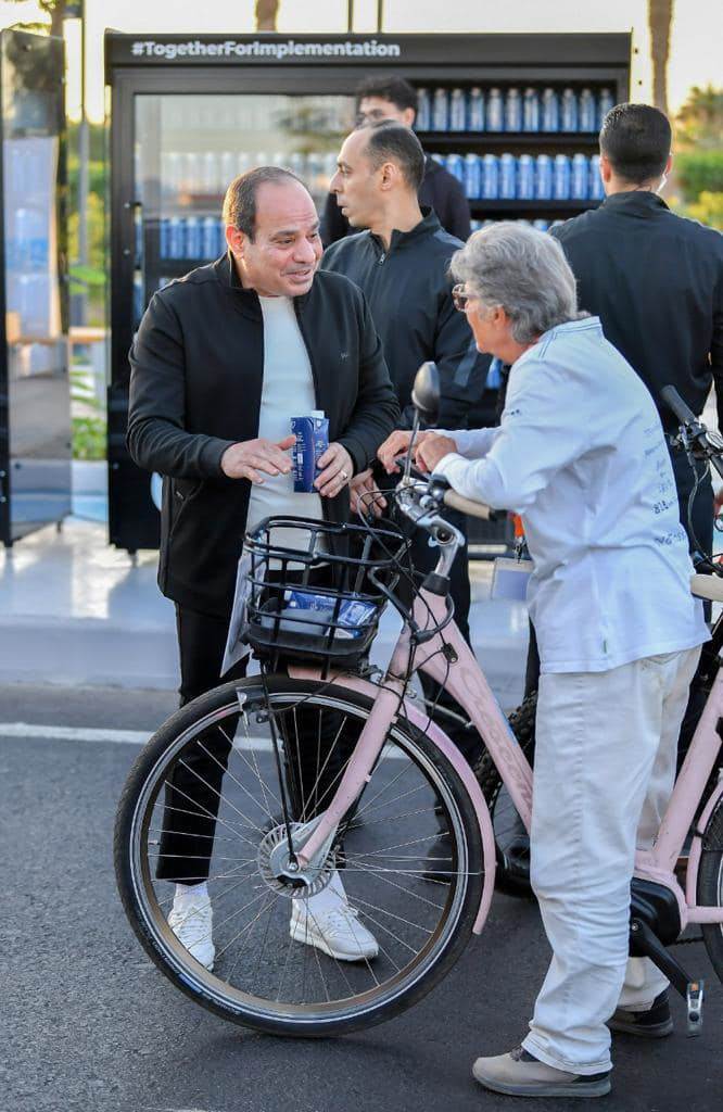 وكان الرئيس السيسي قد قام بجولة تفقدية - فجر اليوم - بالدراجة في مدينة شرم الشيخ، تفقد خلالها المنطقة الخضراء الصديقة للبيئة، التي تشهد العديد من الفعاليات والأنشطة، خلال انعقاد القمة العالمية للمناخ، كما التقى بعدد من الشباب المشارك في القمة بالإضافة إلى ضيوف مصر من الأجانب.