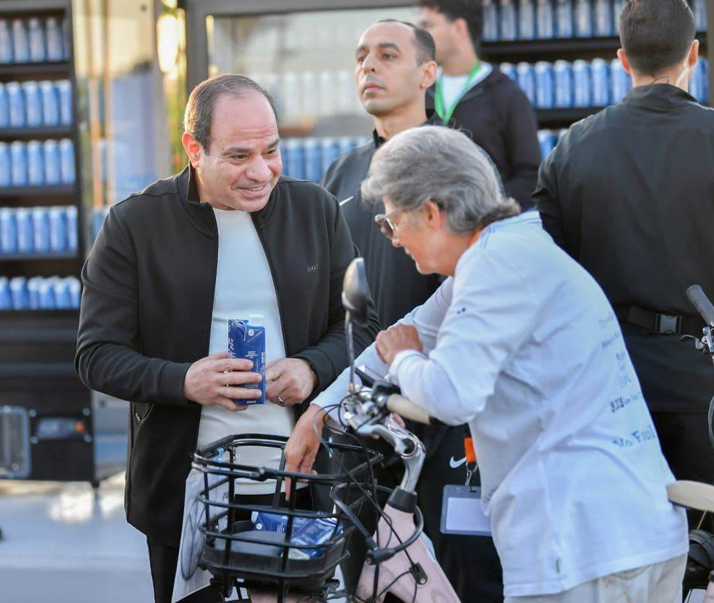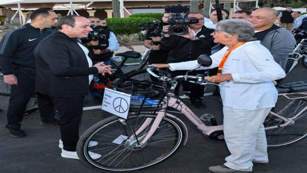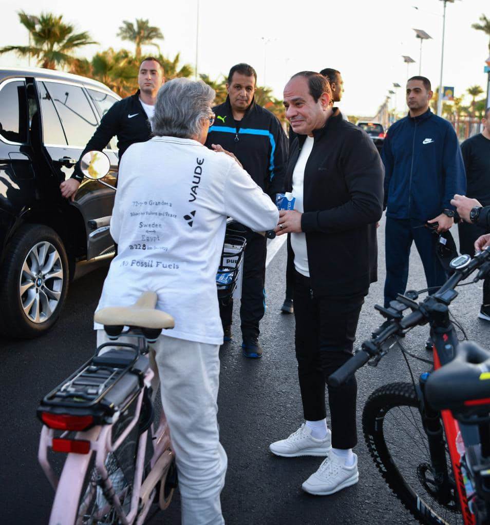أثناء جولته بالدراجة الهوائية.. الرئيس السيسي يلتقي مع سويدية قطعت رحلة 4 شهور بدراجتها للمشاركة في مؤتمر المناخ
