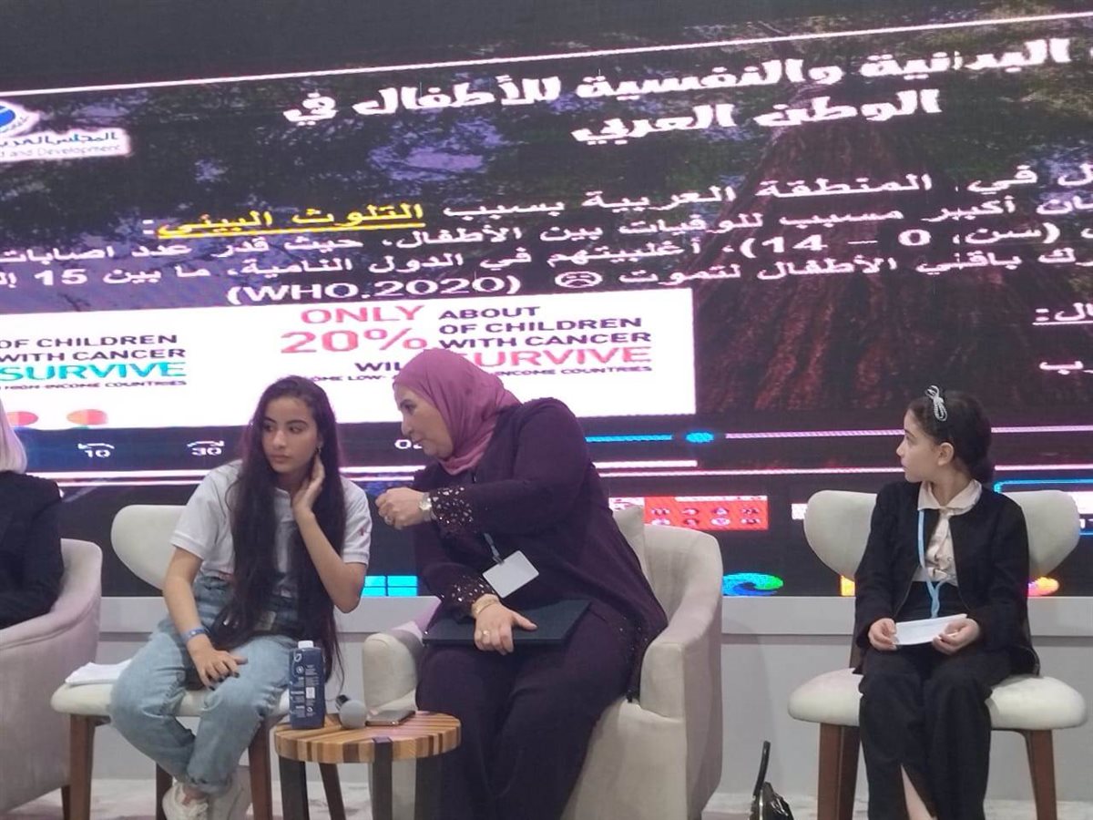 استمع الحضور إلى شهادة الأطفال من مصر وسوريا والإمارات عن مدى تأثر حياتهم بسبب تغير المناخ و حقهم فى ضمان مستقبل آمن يشمل الغذاء والصحة والتعليم.. والأخطر هو عمليات النزوح وتهجير السكان نتيجة فقدان العيش الكريم بسبب المناخ والصراعات كما عبرت الفتاة السورية والتي أشارت إلى عدد اللاجئين التي قدرت بـ79.5 مليون شخص عام 2019 وفق إحصاء المفوضية السامية لشؤون اللاجئين.