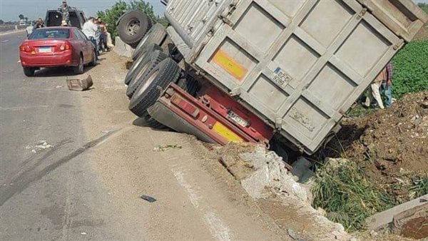 أصيب سائق شاحنة نقل، جراء اختراقها الحاجز الخرساني على طريق رافد جمصة، بمحافظة الدقهلية، وسقوطها داخل أرض زراعية.