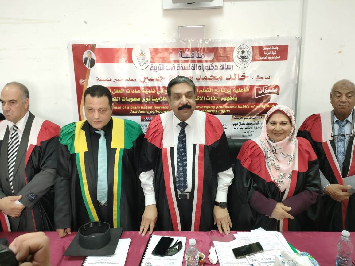 حصل الباحث خالد محمد صالح سعد المعلم الخبير (فلسفة) بشمال سيناء على درجة الدكتوراة في الفلسفة في التربية من كلية التربية بجامعة العريش، وكانت الرسالة بعنوان : فاعلية برنامج التعلم القائم على المخ في تنمية عادات العقل المنتجة ومفهوم الذات الأكاديمى لدى التلاميذ ذوى صعوبات التعلم .