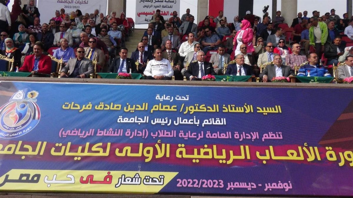مشيداً بكثافة الإقبال وحماس الطلاب علي المشاركة، بما يؤكد نجاح استراتيجية الجامعة في توسيع قاعدة المشاركة في الأنشطة الطلابية، مشيراً إلي أن الجامعة تولي أهمية كبيرة في رفع كفاءة منشآتها الرياضية لخدمة أبنائنا الطلاب، ومقدماً الشكر لكل من أسهم في نجاح هذا اليوم الجميل من الإدارة العامة لرعاية الطلاب، ومكاتبها بالكليات، وكليات التربية الرياضية والتربية النوعية والسياحة والفنادق، والطلاب المشاركين في الافتتاح للظهور بهذا المظهر المشرف.
