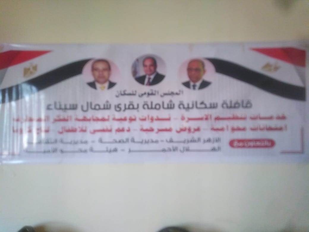 وقالت نوال سالم مدير عام فرع المجلس القومى للسكان بالمحافظة: إن القافلة السكانية الشاملة تحت رعاية الدكتور محمد عبد الفضيل شوشة محافظ شمال سيناء والدكتور طارق توفيق نائب وزير الصحة لشؤون السكان .