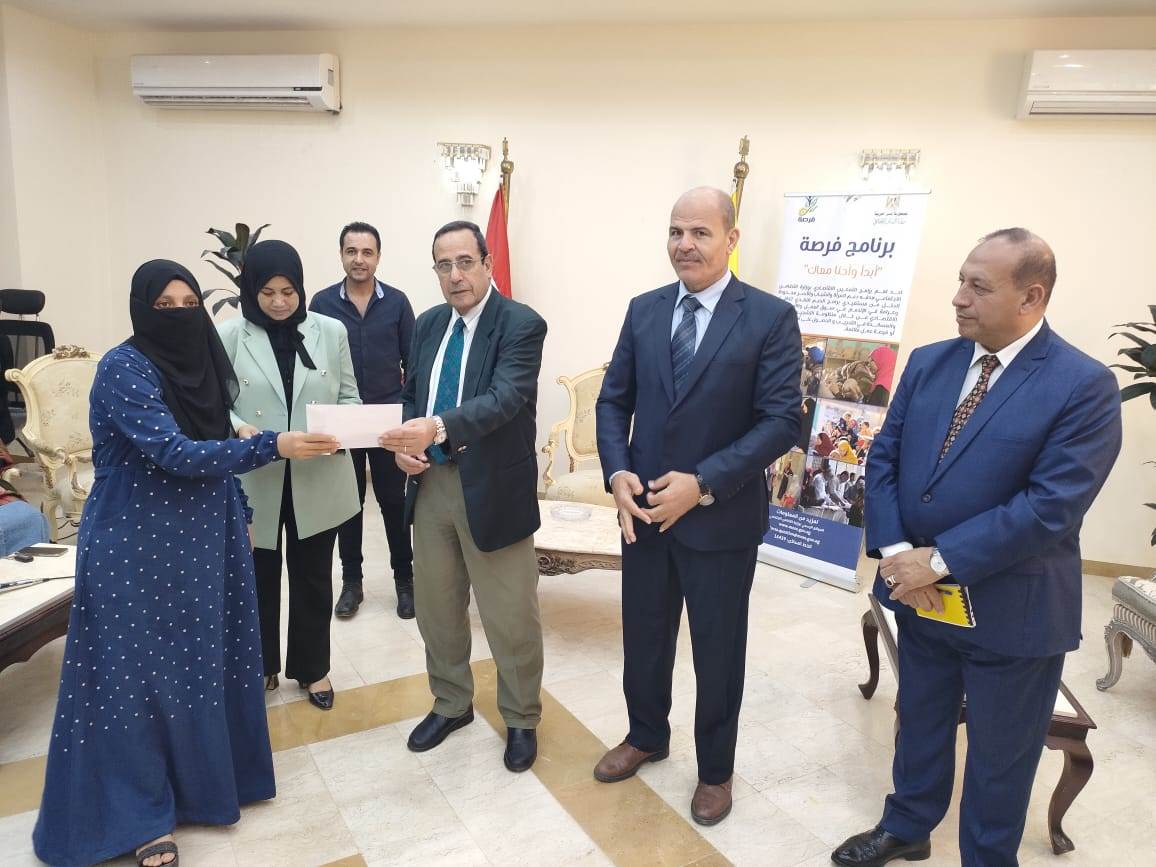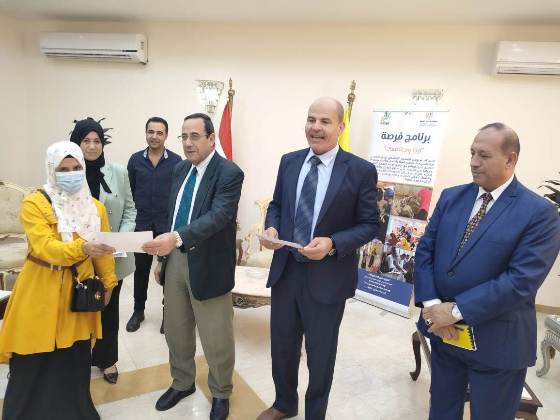 وقال المحافظ إن برنامج فرصة يهدف لتمكين المستفيدين من الدعم النقدي ”تكافل – كرامة – ضمان” من الانتقال من العوز والحاجة إلى الاعتماد على الذات .