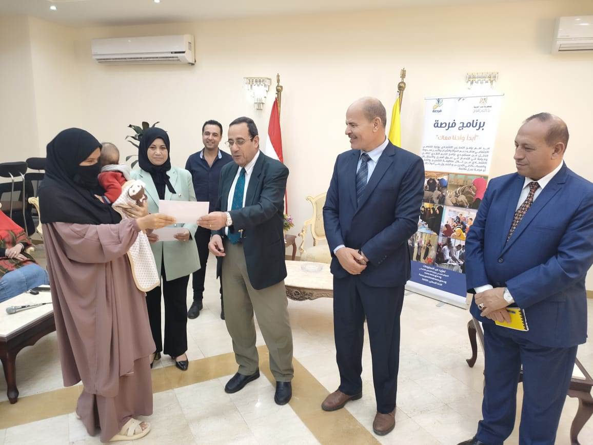 وأشار المحافظ خلال تسليم عدد من رؤوس الأغنام لمستفيدي برنامج تكافل وكرامة ضمن برنامج التمكين الاقتصادي لوزارة التضامن الاجتماعي "فرصة"، وذلك بحضور العميد مصطفى محمد مصطفى رئيس الإدارة المركزية لمكتب المحافظ، على غيط مدير عام التضامن الاجتماعي، والدكتورة عبير حجاب مدير عام مديرية الطب البيطري” إلى أن ذلك في إطار الجمهورية الجديدة، والتي أطلق السيد رئيس الجمهورية فيها سياسة اجتماعية تهدف إلى مد مظلة الحماية الاجتماعية للأسر الأولى بالرعاية وتقديم وسائل وآليات اقتصادية توفر لها الحماية من أخطار التقلبات الاقتصادية.