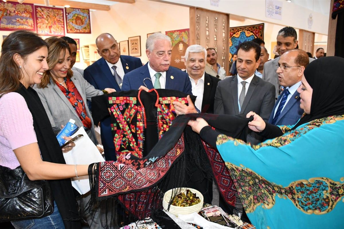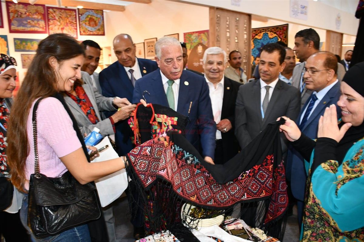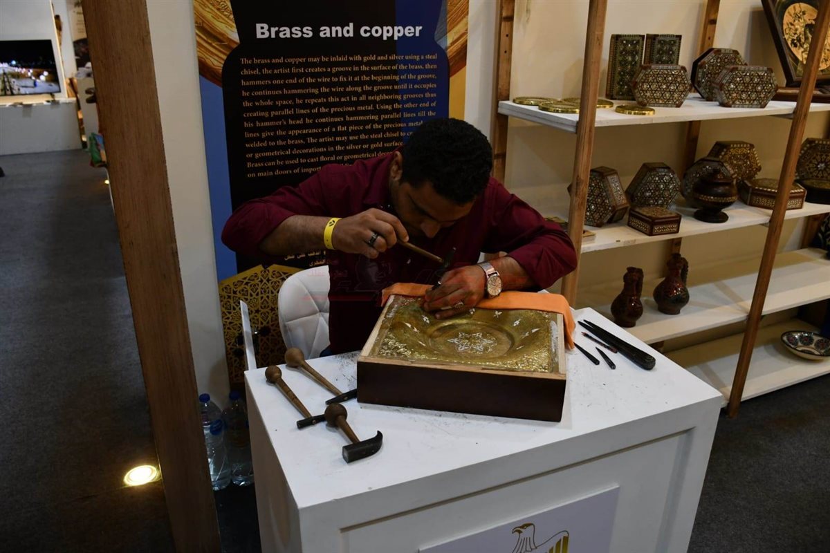 واستمع المحافظ إلى شرح العارضين من مركز الحرف التقليدية بالفسطاط، التابع لقطاع صندوق التنمية الثقافية، كذلك من العارضين المشاركين بالجناح من محافظات مصر، حول طرق إنتاج الحرف، والخامات المستخدمة، وآليات العمل ليخرج المنتج النهائي بهذا الشكل المشرف لمصر.