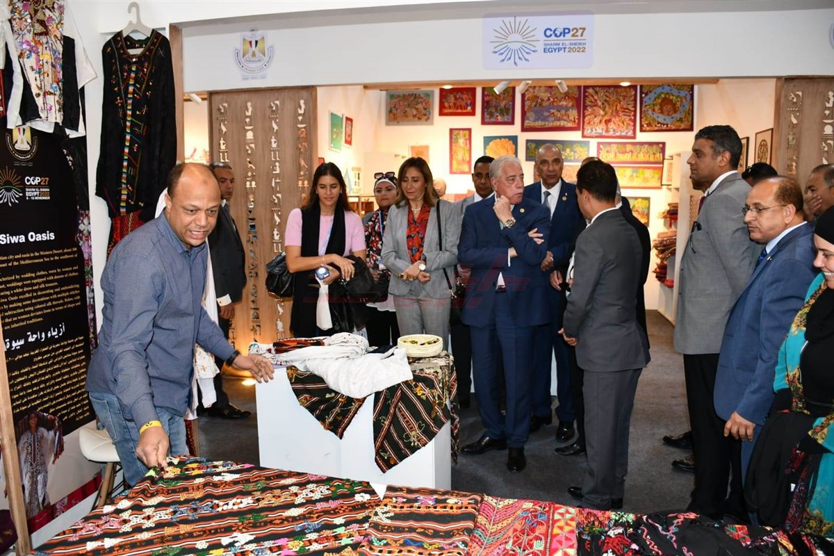 قامت الدكتورة نيفين الكيلاني، وزيرة الثقافة، اللواء خالد فودة، محافظ جنوب سيناء، اليوم بزيارة جناح وزارة الثقافة بالمنطقة الخضراء، للحرف التقليدية والتراثية، المشارك بقمة المناخ cop27 بمدينة شرم الشيخ، بحضور الفنان هشام عطوة رئيس الهيئة العامة لقصور الثقافة.