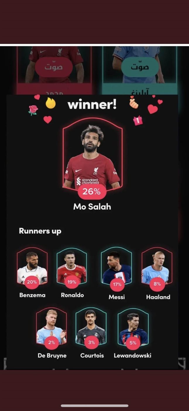 فيما حصد الدولي المصري محمد صلاح نجم فريق ليفربول الإنجليزي، جائزة أفضل لاعب في عام 2022 بتصويت الجماهير، المقدمة من "تيك توك".
